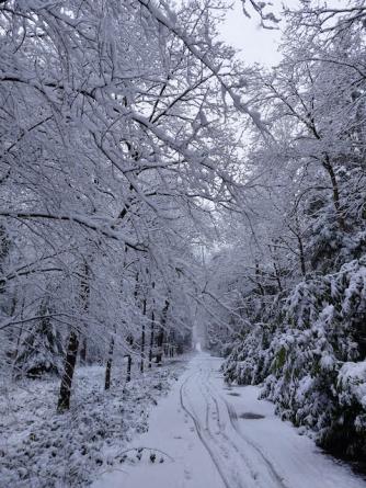 Als ik naar buiten kijk zie ik de grootste sneeuwvlokken die ik ooit heb gezien. De hele wereld is wit, nog witter dan toen we aankwamen. Kom, we gaan wandelen, zeg ik. We pakken ons warm in en maken een van de mooiste winterwandelingen van m'n leven.