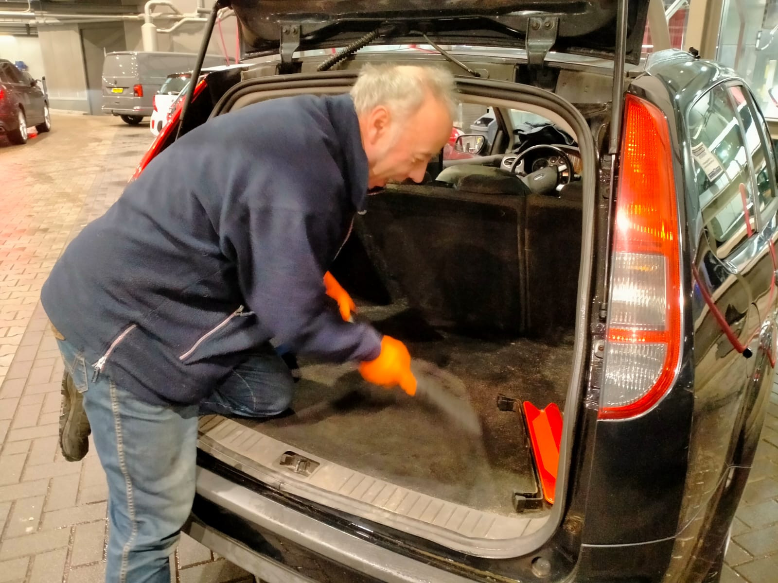 De auto is goed terecht gekomen, zelfde middag grote schoonmaak van vooral binnenkant, maar buitenkant glimt ook weer. Hij heeft zijn best gedaan, met een big smile, heerlijk om te zien!