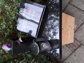 Eind september is er een gedenksteen geplaatst in de tuin van Mark en de kinderen (Ook deze gedenksteen heeft Kim samen met Mark ontworpen)