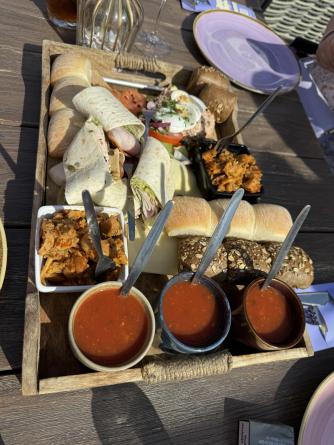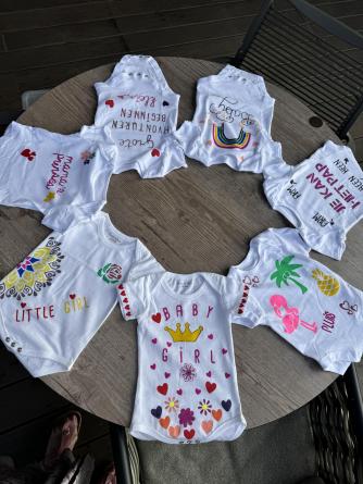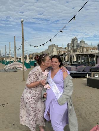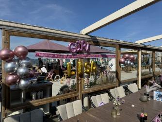 Vandaag de verrassingsdag voor Lisa ze is alweer 32+5 zwanger . Krijgt al een aardig buikje. Ze moet nog een weekje werken en gaat dan met verlof . Nog 7 werkjes wachten en dan zullen we de kleine prinses gaan ontmoeten . 🩷 al mijn kleinkinderen zijn me even lief . Maar je eigen dochter zwanger zien is toch anders . Esdin wil haar graag zelf naar de locatie van de babyshower brengen . Dus die hebben we de locatie gestuurd waar hij haar af moet zetten . Jennifer Beau en ik vertrekken om 12.45 om eerst de locatie te gaan versieren. Gelukkig geeft Beau een elektrische ballonne pomp meegenomen . Want met mijn sonde lukt het niet om een ballon 🎈 op te blazen . 13.40 zijn we klaar en drinken eerst een drankje . Voordat iedereen komt. Langzaam druppelt iedereen binnen . Nu is het wachten op Lisa . Jennifer gaat alvast naar de locatie waar Esdin Lisa af zal zetten. 14 uur komt Lisa aanlopen . Ze is verrast , ziet er prachtig uit in haar lila jurk . We krijgen een welkoms smoothie . Ik toost wel mee maar drink hem niet op . Daarna gaan we eerst een high tea doen . Ziet er allemaal heerlijk uit . Probeer een hapje om toch mee te kunnen doen . Lisa geniet van alle aandacht . Daarna gaan we cadeautjes geven . Lisa is aardig verwend , alhoewel de kleine prinses moet zowat haar ouders vragen een kast erbij te kopen 😂😂. Na de cadeautjes gaan we rompertjes versieren . Komen allemaal verschillende creaties uit . Echt super leuk . Daarna nog even op de foto op het strand . Het was een super geslaagde dag . Het weer zat mee . Het was heerlijk in het zonnetje . Don pikte ons weer bij de locatie op . En daarna heb ik Lisa met alle cadeautjes terug naar huis gebracht . Moe maar voldaan ga ik een uurtje later weer richting huis . Ik ben blij dat ik het allemaal heb mogen en kunnen regelen voor mijn meisje 🩷 ondanks alle ellende toch weer een dag met een gouden randje .