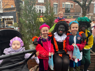 Op tijd weer uit ons mandje . Vandaag komt sinterklaas aan in het land . We gaan samen met alle kleinkinderen naar de Frederik Hendrik laan om naar de intocht te kijken. Gideon en Denise zijn er ook met Lexi en Luca . Er loopt ook een groep zwarte pieten mee in de optocht . Samen met de pieten gaan de kleinkinderen natuurlijk op de foto . Dan weer lekker naar huis het is koud . Samen koffie gedronken . En daarna gaat iedereen weer lekker naar huis en ik zei de gek lig er om 20 uur al in .