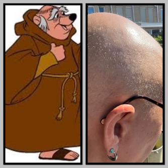 Momenteel zijn er twee duidelijke uiterlijke veranderingen waar te nemen door de gevolgen van de chemo. Tuurlijk m'n kale kop maar dat is niet waar ik op doel. Donsje is weer terug maar in aangepaste, zeg maar FRIAR TUCK vorm.