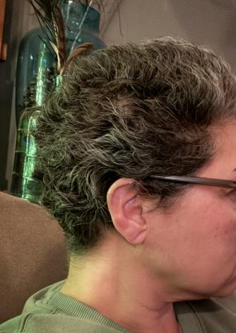 Bizar hè hoe het haar terug kan komen na de chemo. Ik had levenslang juist heel sterk krullend haar. Op de plekken waar mijn haar met bossen uitviel is nu bijna steil haar terug gekomen. Alleen op mijn achterhoofd krult het als vanouds. En ik wordt weer blond. Nou ja: op sommige plekken. Echt heel raar. Heb nu een ratjetoe van kleuren op mijn bol.