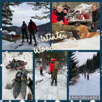 Op een wandeling met uitzicht op het Bandakmeer hebben we het lopen op sneeuwschoenen uitgeprobeerd. Het was even wennen, aangezien Finn achter mij liep en af en toe met zijn voorpoot op de achterkant van mijn sneeuwschoen stapte en het dan voelde alsof ik even teruggetrokken werd. Maar gelukkig had Finn ook wel snel in de gaten dat dat niet handig was en hield hij wat meer afstand. Natuurlijk was ik ook nu weer de enige die op het eind van de wandeling in de diepe sneeuw mijn evenwicht verloor. Lachend in de diepe zachte sneeuw heb ik nog een sneeuwengel gemaakt voor de film 😁.