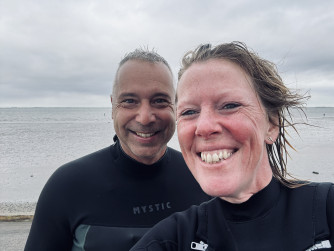 Een week later lukt het mij om bij een nieuwe sessie opnieuw mijn record in kilometers te verbeteren, wat een goede boost geeft aan mijn zelfvertrouwen. Al moet ik er wel voor blijven waken dat ik mij niet, net als in het verleden bij het hardlopen, te veel ga laten leiden door het aantal kilometers en de snelheid van het varen. Dan ga ik mij weer te veel focussen op de prestatie en juist het plezier moet op nummer 1 blijven staan. Daarnaast ga ik anders te vaak over mijn lichamelijke grenzen heen, waar ik dan vervolgens de prijs voor moet betalen. Bij de laatste sessie heb ik op een gegeven moment ook zoveel buikpijn dat ik wel naar dat signaal moest luisteren en de sessie eerder af moest breken dan dat ik eigenlijk in mijn koppie heb. Het harnas dat ik om mijn middel draag om mijn kite aan vast te kunnen maken geeft namelijk extra druk op mijn buik. En dat kan ik de ene keer beter hebben dan de andere keer. Ik heb mij voorgenomen om mij de komende sessies meer te gaan focussen op het verbeteren van de transities (het draaien zonder je in het water te laten zakken, zodat je weer de andere richting in kunt kitesurfen) en het aantal kilometers even te laten voor wat het is. Het blijft gewoon echt een enorm toffe sport en wat ben ik blij dat we er een aantal jaar terug mee gestart zijn. Ik wijs lotgenoten er dan ook altijd op dat er de mogelijkheid is om in het nieuwe jaar via de stichting Kite4Life door middel van drie kitesurflessen kennis te kunnen maken met deze sport. En zo ie zo is het voor iedereen leuk om eens je grenzen te verleggen en een nieuwe uitdaging aan te gaan, dus een proefles cadeau geven kan ook een leuk idee zijn.