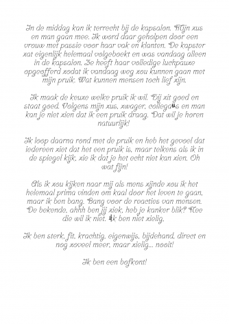 Ach, wat verdrietig. Maar wat beschrijf je het mooi. En inderdaad, je pruik staat je echt prachtig ❤️ (alhoewel ik dat korte koppie ook echt heel goed bij jou vind staan).