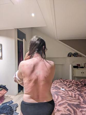 Ik werd helemaal gek van de jeuk. Het voelde (voelt nog steeds) zo branderig aan. Helemaal heet waren de plekken. Daarnaast had ik het super koud.