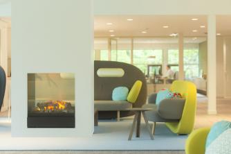 Gisteren leek het alsof we een leuk uitstapje gingen maken. De zon scheen en het werd steeds "groener". Door het bos reden we naar de kliniek. Er zijn hier ook een heleboel andere kllinieken te vinden. Toen we de kliniek in gingen moesten we even goed kijken waar we ons moesten melden. De entourage was heel toegankelijk, alsof je in een hotel kwam. We kregen heerlijke cappuccino en konden na aanmelden plaats nemen op een van de banken of kuipstoelen.