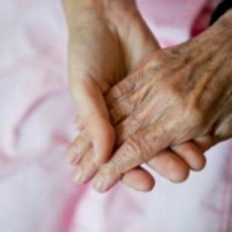 Het kleine meisje is volwassen en kan alleen nog de hand van haar moeder vasthouden hopen op een blik van herkenning.