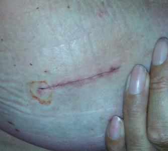 Gisteravond de pleister van mijn borst verwisseld. De wond zag er mooi uit, ik had veel erger verwacht. Eigenlijk wel stoer zo'n litteken.