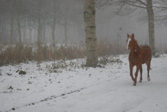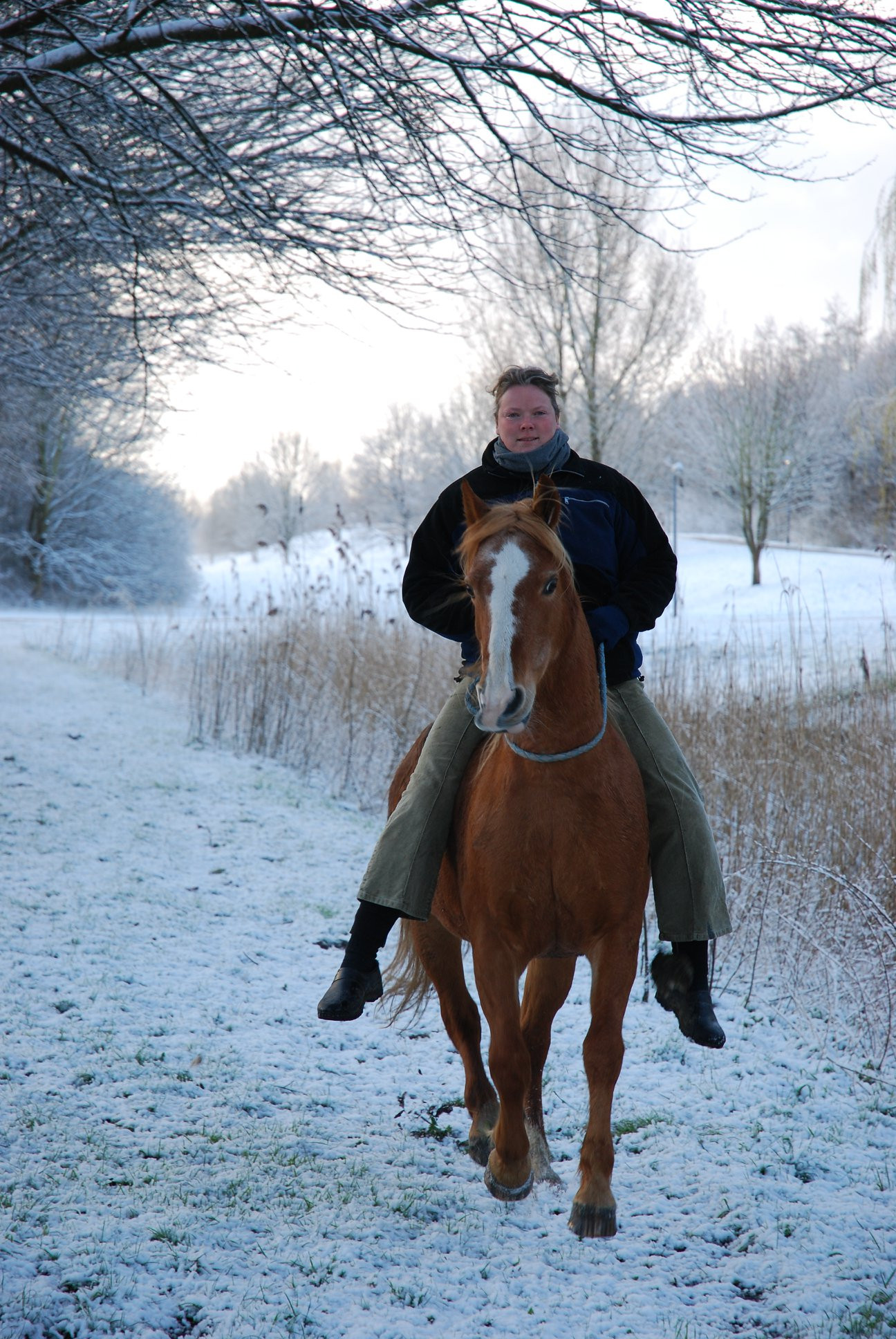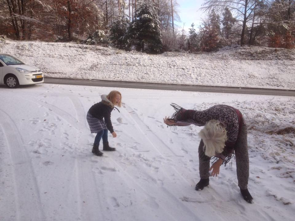 Ik heb altijd meer van kou gehouden dan van warmte. Vroeger was ik met -5 lekker in mijn t-shirt aan het uitmesten, van de beweging kreeg ik het altijd warm en als het dan tijd was voor pauze dan trok ik mijn trui weer aan. Tijdens het rijden met de paarden had ik steeds de handschoenen van anderen aan….. niet omdat ik ze nodig had, maar omdat hun koude handschoenen mijn handen koelden en als ik te hete handen kreeg, dan wisselden we weer en had er weer iemand even tijdelijk een warme handschoen. En elke ochtend als ik de gordijnen opendeed en zag dat er sneeuw lag…. Dan sprong ik mijn bed uit en voelde ik me weer zo blij als een kind. Ik liet alles uit mijn handen vallen om naar stal te gaan en mooie ritten te maken. En als dat klaar was, dan ging er een gewone wandeling achteraan. Soms liep ik gewoon 4km naar stal door de sneeuw omdat dat sneller en makkelijker ging dan fietsen en dan liep ik dat erna weer lekker terug.