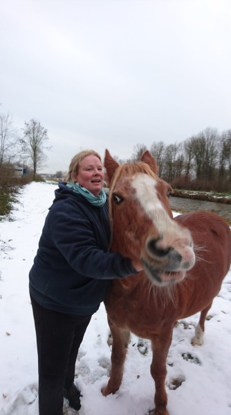 De beestjes lieten vandaag weer zien waar we het voor doen.... Nhora wilde wel van de wei af, maar Erna had geen zin. Nhora kwam mij dus racend ophalen om te vertellen dat ik Erna moest ophalen..... de hoek van de kas red ik precies en daar aangekomen was Nhora ondertussen al voor me uit geracet om Erna te vertellen dat ze samen terug moesten. Na een paar keer roepen besloot Erna maar om met me mee te gaan en samen raceten ze naar de stal. Nhora ging in de bak nog even verder en dat is hilarisch. je hoeft alleen maar een beetje met je voeten op de grond te stampen en ze vliegt bokkend de hele bak door. Zodra ze klaar is komt ze bij je staan en wil ze overal gekroeld worden. Het was zulk vredig weer vandaag. Weinig wind, alles is redelijk droog, zelfs een waterig zonnetje gezien en eerlijk gezegd, dat is het mooiste weer van de wereld. Niet te zonnig, dat is me te fel licht, niet te nat, geen wind, niet te heet, gewoon lekker. Al met al een dag met een gouden Randje. En terwijl ik dit schrijf denk ik aan de dag zeven jaar geleden. Precies zeven jaar geleden hebben we mijn allerliefste Loes laten inslapen. Deze dame zit zo diep in mijn hart en mijn ziel verweven. Misschien was zij het wel die het lampje liet branden vandaag. Tevreden gesteld met wat heerlijk nummers van Blof is de liefde voor het leven weer volledig terug. Mooie gedachten om zo heerlijk te gaan slapen.