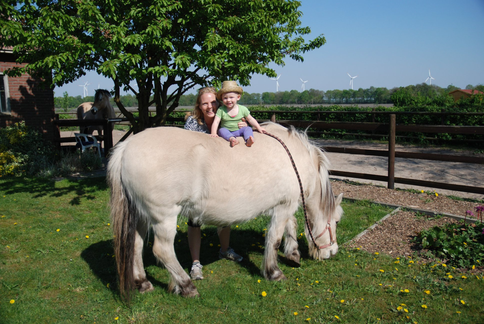 Gemeen was ik verder niet hoor, zodra ze er af lag ging ik ook meteen stil staan en een hapje gras eten. Zodra ze weer op twee benen stond mocht ze ook altijd weer bij me komen en weer op mijn rug klimmen. In het begin was ze altijd best boos... dan liep ik nog wel is een stukje door tot ze niet meer boos was, maar later maakten we er spelletjes van wie van ons twee het meest allert was...