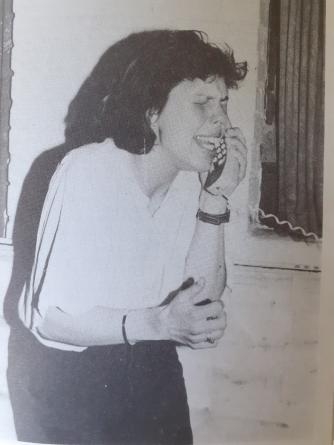 Foto uit het programmaboekje van 'bedkwartet' 1990. Wat een emotie he. En dat in een losse telefoonhoorn.