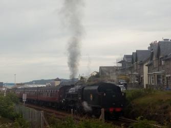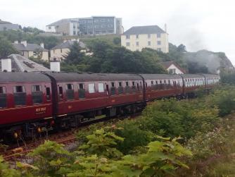 Het grote voordeel van de trein is dat je niet nat wordt en evenmin hoeft op te letten of je aan de goede kant van de weg rijdt als je vertrekt bij een tankstation of bij een linkerbocht om wegwerkzaamheden moet sturen zodat je op de rechterkant van de weg uitkomt om er dan pas kilometers verderop achter te komen, doordat een tegenligger wel heel heftig met zijn lichten begint te knipperen, dat je in Schotland bent en daar aan de andere kant van de weg hoort te rijden. Ik wil jullie niet jaloers maken met foto's van rondrijden door Schotland en Ierland op de motor maar het is daar echt mooi motorrijden.