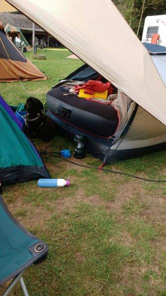 Op zoek naar een foto van hondjes in een Ikea tas in de trein, kwam ik het luchtbed in de tent tegen. Wilde jullie die niet onthouden.