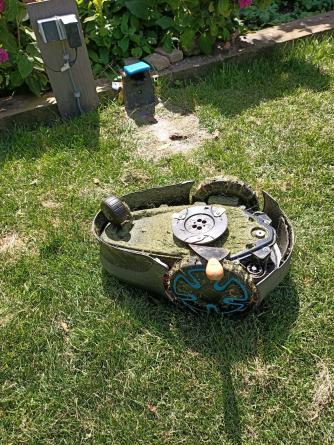 Ik vond MAX! in de tuin. Hij had zich klemgereden bij het laadstation en knipperde hevig met al zijn lampjes, standby, laden, maaien en naar huis. VOLLEDIG de weg kwijt. Na een liefkozing, teruggezet in het laadstation en een warme reset was het niet veel beter, zie onderstaande video.