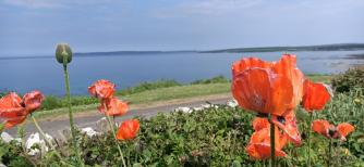 Wat een mooie foto met die, dacht ik, klaprozen op de voorgrond. En nou de kastelen!