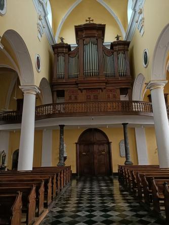 Eerste stop was in Stavelot. Daar schijnt een beroemde abdij te staan en mevrouw Zweef was geïnteresseerd of er nog monniken een biertje aan het brouwen waren. Of kaarsen aan het gieten, of beide. Niets daarvan, de monniken zijn gestopt met dat monnikenwerk en de kathedraal hebben twee inwoners van Stavelot steen voor steen tot op de fundamenten afgebroken en de stenen verkocht. Wat resteerde waren slechts een stukje van de toegangstoren en wat lage muurtjes. Vast hebben ze ook de brasserie afgebroken en verkocht, want hoewel gevraagd bij de vvv in het museum, toch niet gevonden. Gelukkig wel een tearoom en de Eglise was indrukwekkend.