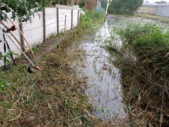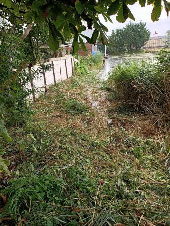 Dus na het tekenen van het koopcontract was ik ook onderhoudsplichtig geworden van een "secundaire watergang breder dan 6 meter". Hetgeen betekent dat ik de walkant en 3 meter langs het perceel moet vrijhouden van begroeiing. Nu had ik daar als kind al ervaring mee. Mijn vader had een verbouwde boerderij in de Wieringermeer met een greppel met wat water rondom de boerderij. Aan twee zijden een echte greppel die meestal droog stond en aan de kant van de weg iets van twee meter breed. Dat was vanaf de kant best te doen, vooral omdat je eigenlijk alleen maar de helft van de sloot moest doen. Primaire watergang smaller dan 6 meter.
