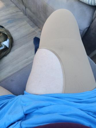 Na de drainage de kous aangetrokken, het bovenrandje krulde om en er ontstond al binnen enkele ogenblikken mijn hangbuikbeen. Nee, dat is niet goed.