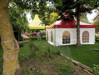 Jazeker, om half acht vanmorgen hoorde ik al tentafbreekgeluiden en kon ik de harde werkers koffie aanbieden. Het gras heeft zich prima gehouden en MAX! heeft zijn eerste rondje er al weer opzitten. En ik rommel een beetje in en rondom huis, schrijf een blog en doe alsof ik al gepensioneerd ben. Straks nog even met de hondjes de strekdam aflopen, aan het eind krijgen ze wat lekkers. (Hondenlekkers)