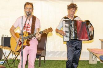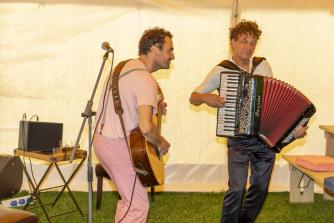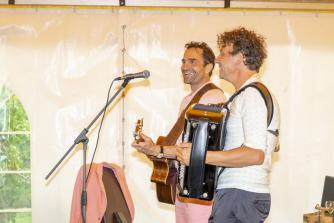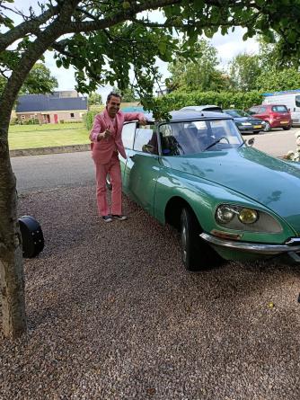 We hadden een feestje. Feestje? Zeg maar gewoon FEEST. Met hoofdletters. Wat een geweldige dag was het. Vorig jaar getrouwd en toen alleen een dag met de getuigen, welke al geweldig was. Maar nu een feest met familie en echte vrienden. Een uitstekende cateraar die een bbq verzorgde met salades. En een echte bbq, geen slager die zijn vlees bakt, maar een kok die bereidt. En dat verschil proef je! De ene salade nog lekkerder dan de andere. Vlees, saté, zalmpakketjes, vegetarisch waar nodig. Drie pagode tenten in drie feestelijke kleuren op het gras. MAX! had vrijaf. Tafels, stoelen, koelkasten, twee bbq's, een kok, bediening, het werd een feest zoals we nog niet eerder hebben gehad. Met iedereen die ons lief is. En met Gerard Alderliefste. Ik volg hem al een aantal jaren, heb zijn kompaan Rob Stoop vorig jaar zien spelen en die twee horen bij elkaar. Wat een muziek, wat een sfeer. En Gerard heeft een DS, ook dat schept een band. Dus Gerard Alderliefste met zijn DS op mijn pad en later in mijn DS in de garage. Zo eentje wilde hij ook wel... Maar dan moest er eerst een garage komen. Nou wordt dat laatste lastig als je met je woonboot in hartje Amsterdam ligt..