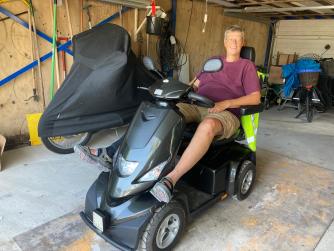 Laat me nu altijd gedacht hebben dat ook die scootmobielers een voet of een been uitstaken om te groeten. Met die stalpoot van jou moet dat toch heel gemakkelijk zijn?