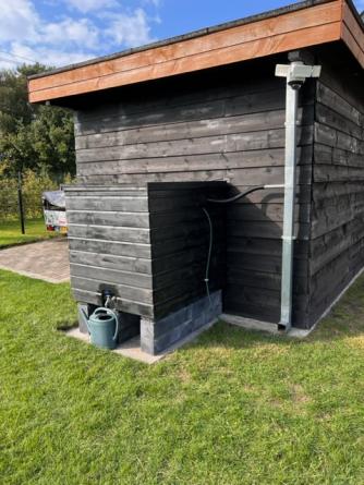 Mooi weggewerkt, en handig gedaan, zo op hoogte en met een kraantje. Vrees wel dat je nog ff op die regen niet wachten.