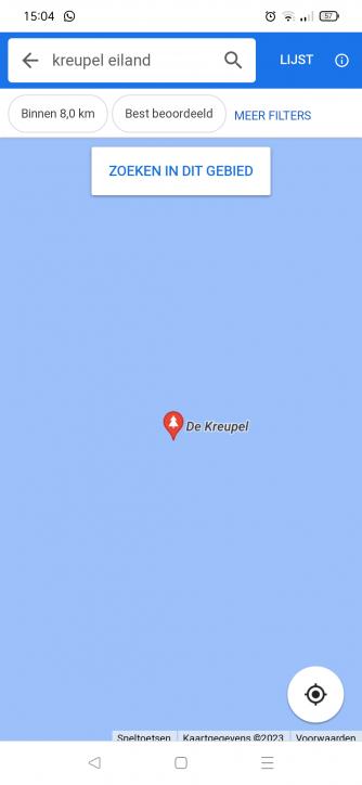 Inchecken op facebook lukte niet. Er kon geen plaats bepaald worden. Suggesties in de buurt: strandtent Zoete Zee in Medemblik, de gereformeerde kerk in Andijk en een obscuur cafeetje in Enkhuizen. Maar niet waar ik was. Dat bestaat officieel niet. Google maar eens op De Kreupel Eiland. Nou ja, het bestaat wel, maar niet zichtbaar in Google maps.