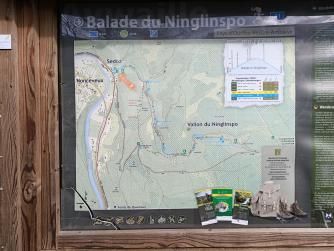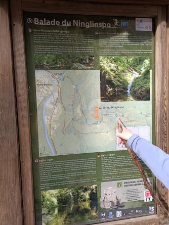 Het was wat regenachtig vanmorgen, dus er was geen animo om weer op de fiets te stappen. Maar een ritje met de auto door 's lands heuvelen is ook leuk. Onderweg onze huisbelg geappt om te vragen wat hij ons adviseerde. Hij weet inmiddels dat mevrouw Zweef een voorliefde heeft voor monniken. Ik denk dat ik als chemo om de hoek komt kijken, ik een muts maak, waarin ik in de rand coolpack leg. Dan blijft er een mooi cirkeltje haar staan. Als een monnik. Willy wist twee indrukwekkende abdijen. We hebben deze opgeschreven voor de volgende keer. Ook wees hij ons op een wandeling langs de Ninglinspo, een idyllisch riviertje en het enige bergriviertje dat België rijk is. Het verval schijnt minimaal 7,5% te moeten zijn voor die classificatie.
