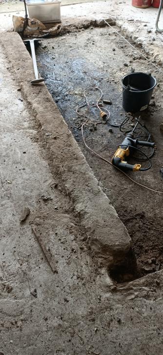 Morgen met oudste broer een kistje timmeren om de rand te storten. En daarna moet de garage half leeg om de vloer verder uit te vlakken, zodat de plaat netjes in de vloer is opgenomen en geen tenenstoter voor mevrouw Zweef meer is.
