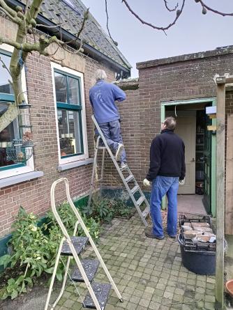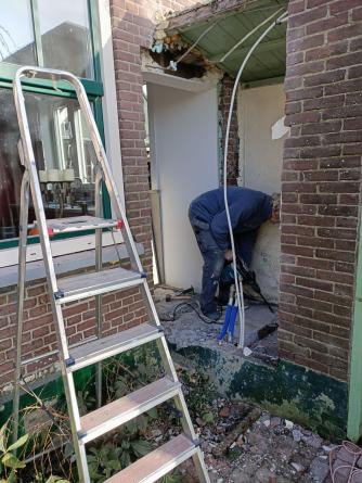 Mijn broers hebben geholpen om de deur naar de toekomstige tuinkamer te plaatsen. Het voorbereidende werk in de keuken was al gedaan. Nu moest een deel van het tussenstukje naar het boetje worden gesloopt. En dan het plaatsen van het kozijn zelf. Oudste broer woont in de buurt, die ging naar huis om te eten en jongste broer mocht kiezen. Pizza of grutten met stroop en custardvla toe. Nou,dat laatste krijgt hij thuis nooit, dus dat was wel duidelijk 😋🍽️.