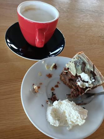Helaas geen tompouce, of misschien wel gelukkig geen tompouce. Want die was vast niet van bakker Swart uit Wervershoof geweest. De appeltaart was op, de cheesecake kon de bediende niet vinden. "En die dan, verkoop je die wel", vroeg ik. Eh...ja, chocoladetaart, zei hij. Maar volgens mij stond die niet voor niets nog in de vitrine.
