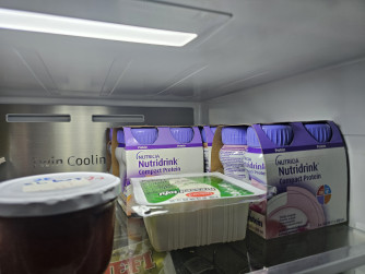 Mevrouw Zweef vertelt mij net dat de halve keukenlade vol ligt met zakken proteïne drank met een lekker smaakje.