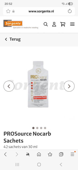 Ook ik zit aan de extra eiwitten via de diettist en zweer bij de zakjes op de foto die ik bestel via sorgente. Heb de neutraal smaak, prima te doen, zie het als een glas frisdrank :-) Succes met de zoektocht Zweef, het heeft mij erg geholpen die extra eiwitten en drankjes, hoop voor jou ook!