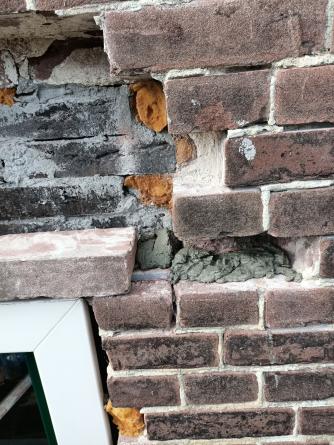 Om naderhand een latei in te brengen moest er 4 lagen steen boven het raam worden verwijderd en dan ook nog eens 10 cm aan beide zijden meer, want de latei moet op het metselwerk aan weerskanten van het nieuwe kozijn rusten.