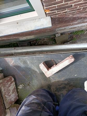 Vrij naar stap voor stap. Het metselen van de stenen boven het keukenraam stonden al lang op het prioriteitenlijstje. Dat het raam er in ging, dat was lang voordat ik mij van enig lichamelijk ongemak bewust was. Oorspronkelijk zat er een kleiner raam, maar ik hou van veel licht in huis. Het raam werd 40 cm langer en 30 cm hoger. En er zat geen latei boven het raam. Daar deden ze vroeger niet aan. Een rollaag zorgde voor ondersteuning van het metselwerk erboven. En toen deden ze ook nog niet aan die achterlijk grote ramen. Een meter was groot zat. Het oude keukenraam, net als het voorraam dat nog vervangen moet worden zijn er later ingeplaatst. En dat is niet volgens de regelen der kunst gedaan. Dus zonder latei en ook zonder lood als waterkering.