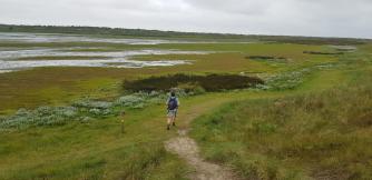 Texel, heerlijk uitwaaien. Bij de boot gelijk links af een prachtige wandeling van ca 20 km. naar de Koog. Bij paal 9 onder het genot van een verdiende versnapering even in de rust en later in het bos op ca 15 km de volgende versnapering.