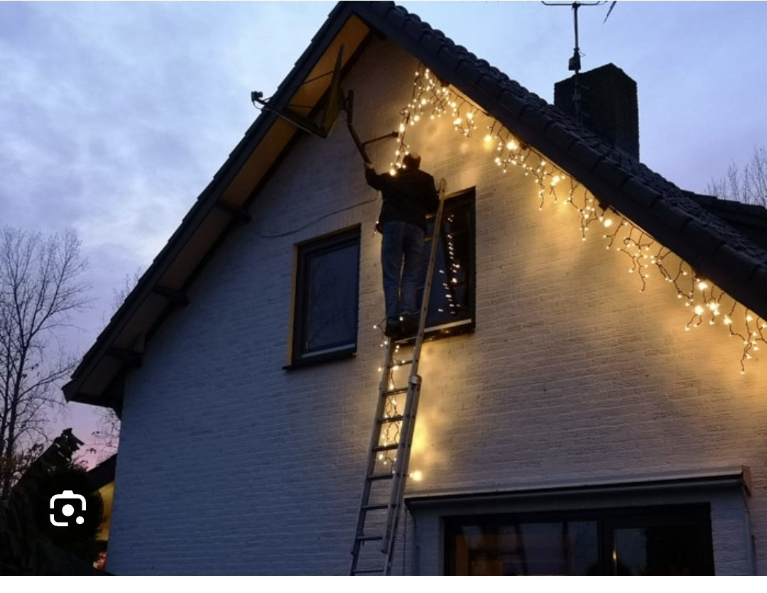 En genieten van je kerstverlichting, rond om de daklijsten,een systeem die je op ingenieuze wijze gemaakt hebt .