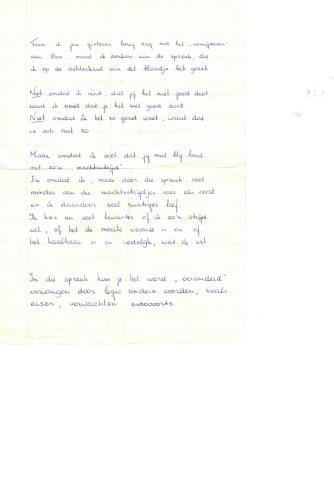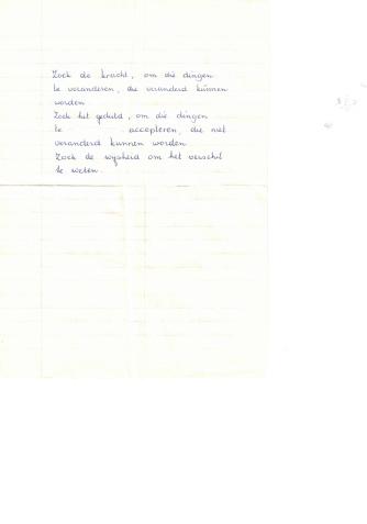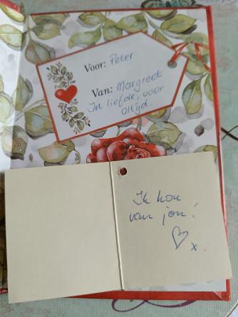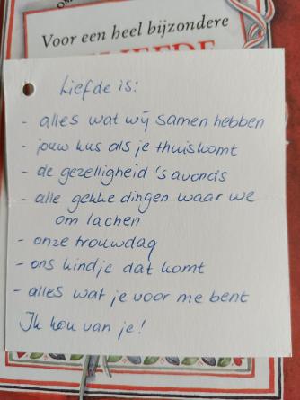 Maar in het boekje lag ook een briefje, en als ik dat lees, dan voel ik de liefde, die we hadden, ik wordt er stil van, wat mooi, dat ze dit aan me schreef.