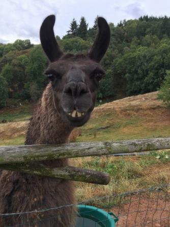 Nog zo’n moment.We wilden toch nog even naar Frankrijk. Ik dacht, dan boeken we een huisje in de buurt van de Loire, ook lekker fietsen, niet te ver weg, ‘s ochtends lekker stokbroodje, glaasje wijn bij het eten, wat wil je nog meer? We vonden een huisje, €175,-, zag er mooi uit, het had een fantastisch uitzicht over een vallei en er waren 3 lama’s. La Bruyere aux Lamas heette het huisje. Gelijk geboekt.Ging ik later op de kaart kijken, liep de Loire toch anders dan ik in gedachten had. We kwamen uit bij Roanne, iets boven Lyon, op de vrijdag dat het mooie weer wat minder mooi werd. De weg naar het huisje toe bleek erg steil en het laatste stuk onverhard dus fietsen kon ik wel op mijn buik schrijven. Het weer was ook veel minder mooi dan we wensten en toen we zondag een beetje door de buurt gingen toeren, regende het de hele dag en was het 12 gr!!De lama’s, het mannetje heette Ali, zie de foto, hadden daar echter geen last van.Maar dan zitten we ‘s avonds met z'n drieën op het bankje, het hondje Keetje in het midden, stilte die soms verscheurd werd door het gebalk van een ezel, en dan krijg je weer zo’n gevoel, alle donkere gedachten worden verdreven. Koesteren die momenten.