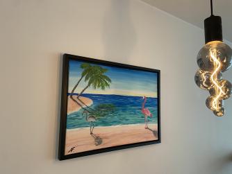 Nadat ik terug was, was het ook gelijk weer super druk met leuke dingen. Ik heb me voorgenomen meer rust in te gaan bouwen en de momenten van reflectie vast te houden. Ik heb voor mijn kinderen een prachtig schilderij gemaakt met een kunstenaar uit Curaçoa via stichting kunstwens (echt een aanrader). In Bonaire was er een kleine grijze flamingo (chogogo) die los stond van alle prachtige roze flamingo’s. En iedere keer als een roze flamingo naar de kleine chogogo toeging, viel de kleine uit. En zo is bij ons thuis het koosnaampje de kleine sacherijnige chogogo geboren als één van onze kinderen weer eens loopt te mopperen (met name Fedde, maar dat vindt hij niet leuk om te horen). Samen met Elijah heb ik de kleine sacherijnige chogogo geschilderd en komt het schilderij in de woonkamer te hangen. Dank je wel stichting kunstwens voor deze mogelijkheid.