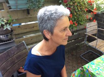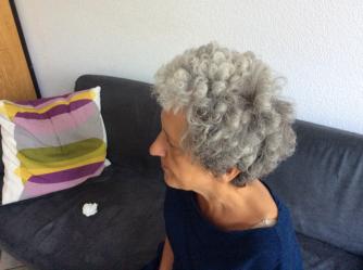 Ze vond het zonde om mijn krullen af te knippen, dus in eerste instantie werd het allemaal een klein beetje korter. Ik werd er niet vrolijker van.......tweede poging, nu alle krullen eraf.......en ineens zag ik mijzelf weer verschijnen in de spiegel. Heerlijk... Oktober vorig jaar zat ik bij haar met het verzoek mijn haar te millimeteren omdat het verschrikkelijk uitviel, was dit ineens de wereld even andersom. Gewoon weer een beetje mijn eigen "gezonde" verschijning. Voelde fijn. (Zie de foto's voor en na.)