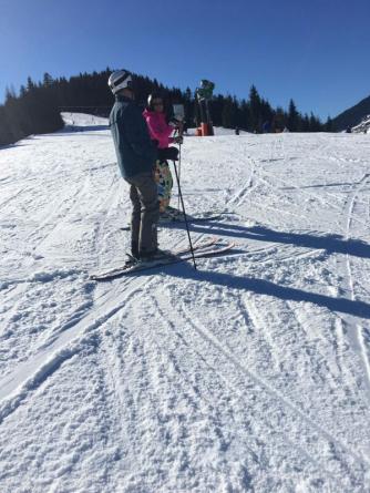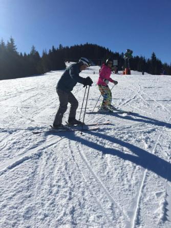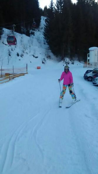 Viel best mee. Het vervelendste vond ik de eerste twee uur les op de " babyhelling" dat naar beneden skiën was heerlijk, maar om boven te komen moest je een soort handvat pakken, wat achter je benen kon, maar mij dus totaal niet lukte. Gevolg, mijn armen werden steeds bijna uit mijn schouder gerukt. Heb er nu nog last van. Tweede dag met de juf met de skilift omhoog. Spannend, die helling naar beneden. In dit gebied zijn best veel rode hellingen die je steeds een stukje over moest steken. Dat is best eng. Het heerlijke van dit skiën is dat je zo druk bezig bent om jezelf weer veilig beneden te krijgen dat je verder nergens anders aan kunt denken.