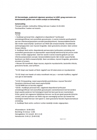 Alle aanhangsels gelezen. Wat ellendig dat het toch nog zo lang heeft geduurd voor de diagnose is gesteld. Terwijl er meerdere biopten genomen zijn. Bizar. We moeten er gewoon rekening mee houden dat ondanks onderzoek er niet meteen de juiste diagnose uitrolt.