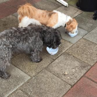 en de hondjes waren haar grote trots de donkere is 12 en de witte 7