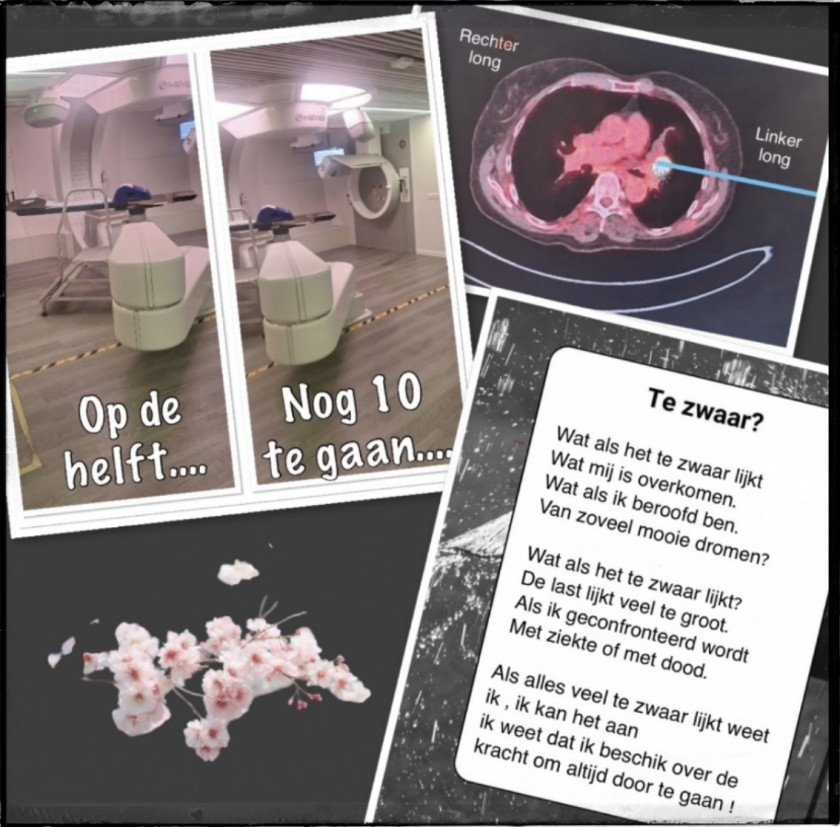 Vandaag heb ik er 10 bestralingen opzitten…. Nog 10 te gaan.. iedere dag vanuit Venlo naar Maastricht. ‘T is pittig. Al vraag ik mezelf wel af waar komt het door ? De taxi ( ziekenvervoer) staat 1,5 uur voor de afspraak aan de deur , was toevallig vanmorgen kwart over zeven.. dan de rit ernaar toe…