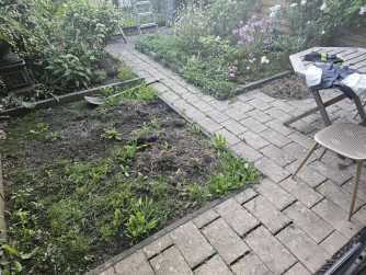 2 dagen later staan de stratenmakers aan de deur? Maar het is een tuin??? Dat varkentje wassen ze wel even...