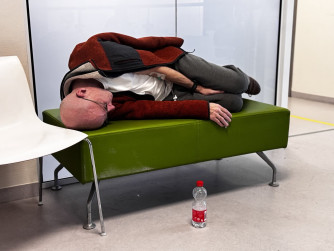 Goedeavond meneer dan nog onbekend, ik heet Martin en ik zie dat u zeer benauwd bent mag ik vragen waar u moet zijn? Huisartsenpost. Ik kijk om me heen het kan toch niet zo zijn dat er geen lift is en waarom is er niemand om hem te begeleiden???